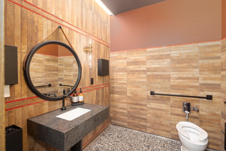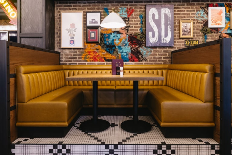 - Vibrant brand details layered into the space