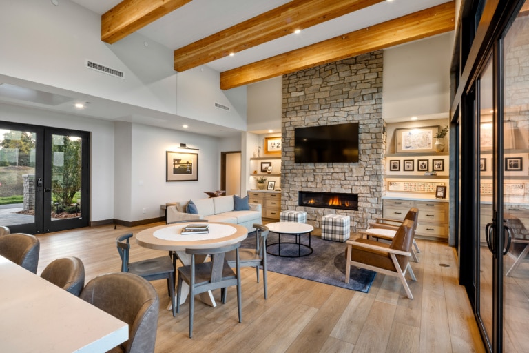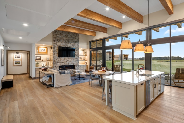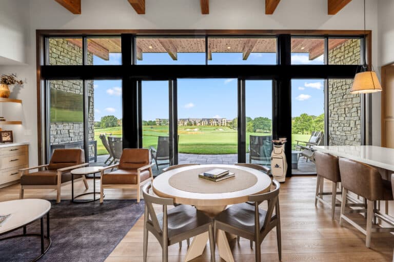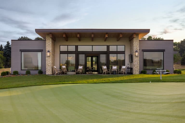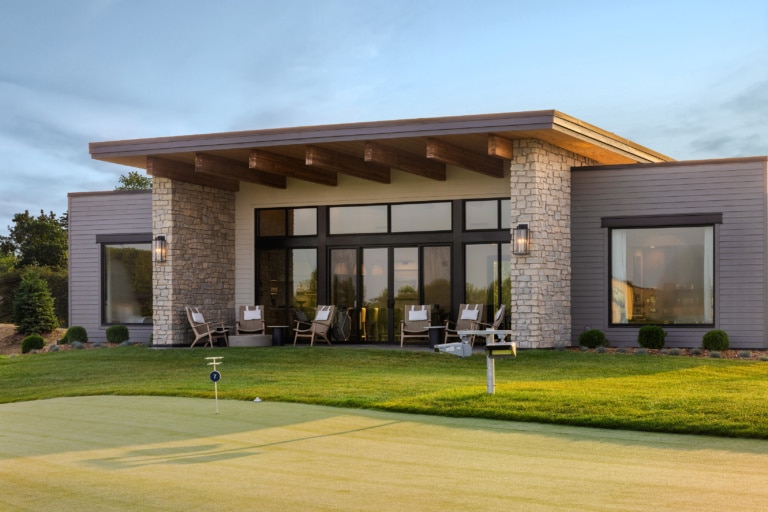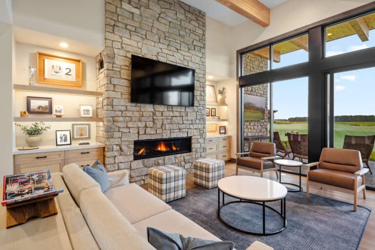 Six, ground-up designed villas now overlook Hazeltine's new short course, Aerie. Each villa features four individual guest suites with private bathrooms. A shared living room with a fireplace, full kitchen and dining spaces centers the villa. Private outdoor patio spaces designed for entertaining overlook the greens.